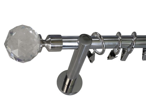 KARNISZ Metalowy NOWOCZESNY KRYSZTAŁ z Cichymi kółkami pojedynczy 19MM