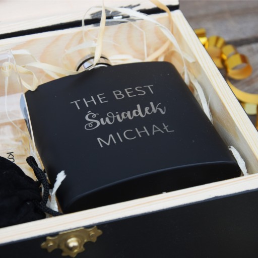 Przedmiotem aukcji jest SKRZYNKA GIFTBOX DLA ŚWIADKA Z TWOIM GRAWEREM z prośbą o świadkowanie .