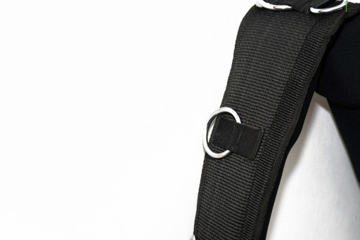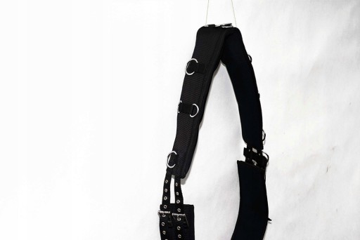 Pas do lonżowania roz. full wykonany z bardzo dobrych jakości materiałów. Część wewnętrzna podszyta grubym neoprenem , aby zapobiec obtarciom. Pas posiada grube poduszki grzbietowe.Okucia wykonane z bardzo dobrej stali szlachetnej, nierdzewnej, bardzo duży zakres regulacji.