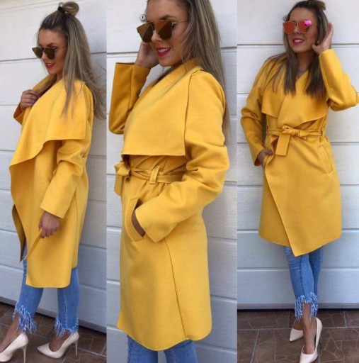 Lekki płaszczyk damski, świetnie sprawdzi się również jako narzutka. Bardzo miły w dotyku, wykonany z delikatnego materiału. Uniwersalny fason, świetny dla każdej sylwetki i stylizacji. Talię podkreśla pasek, wykładany kołnierz można układać na kilka sposobów. Produkt europejski, bardzo dobra jakość materiału.