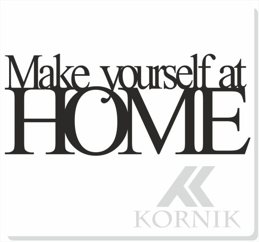 Napis na ścianę "Make yourself at HOME" (Czuj się jak u siebie w domu.)