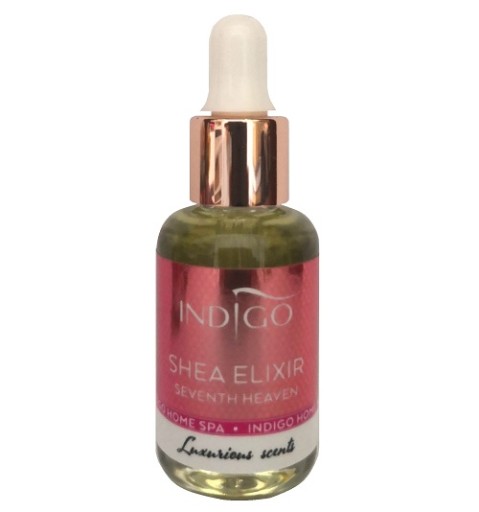 Shea Elixir Indigo Seventh Heaven to magiczny produkt, który Ci w tym pomoże. Dzięki bogatej recepturze odżywi skórki i doda blasku paznokciom. Ale eliksir urzeka też wspaniałym, niebiańskim zapachem! Seventh Heaven to kwiatowo-szyprowa kompozycja oparta na bazie nut mandarynki, róży i białych kwiatów. Kobiece i ponadczasowe połączenie – najpopularniejsze w ofercie Indigo!