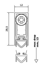 - OSADZONA W PROFILU ALUMINIOWYM DO WPUSZCZENIA WE FREZ OD DOŁU DRZWI