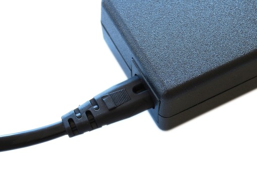 - Do zasilacza z drugiej strony podłączamy kabel zasilający gniazdkowy z wtyczką do gniazdka.
