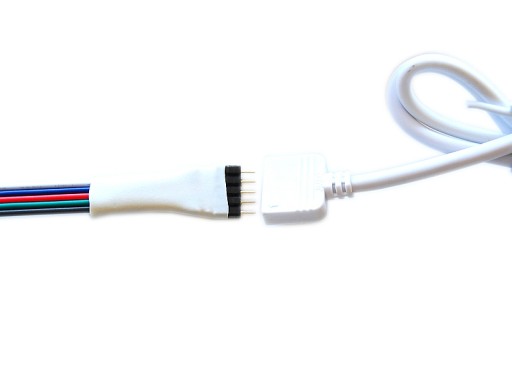- Taśmę LED RGBW podłączamy do kontrolera za pomocą wtyczki przy taśmie i wtyczki przy kontrolerze