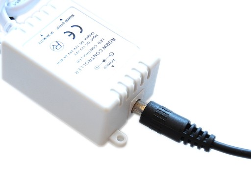 - Do kontrolera podłączamy zasilacz, kontroler ma odpowiednie gniazdo, a zasilacz ma odpowiednią wtyczkę.