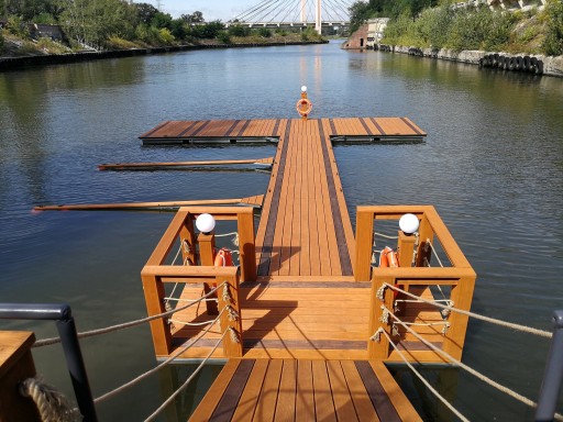 Wykonamy dla Państwa platformę pływającą o dowolnych wymiarach wraz z pływającym pomostem łączącym ją z brzegiem.