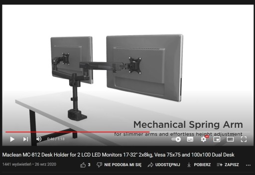 - Uchwyt biurkowy na 2 monitory Maclean MC-812