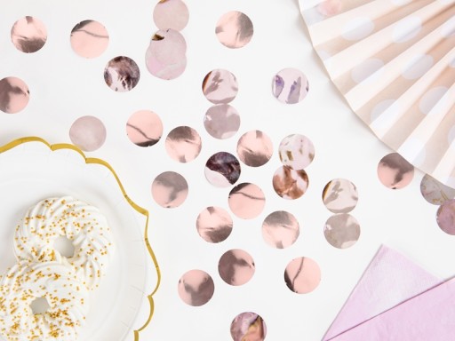 Konfetti wykonane z miękkiej, błyszczącej folii w modnym kolorze rose gold.