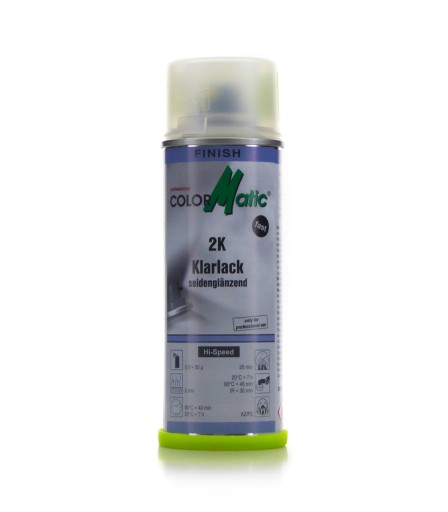Szybkoschnący, akrylowy lakier bezbarwny o wysokim połysku 2K (dwu składnikowy). W specjalnym pojemniku wewnątrz puszki znajduje się utwardzacz, który należy uaktywnić przed użyciem. Dzięki temu jakość tego produktu jest porównywalna z natryskiem z pistoletów, stosowanym w warsztatach blacharsko-lakierniczych.