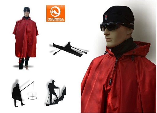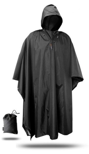 Peleryna wykonana jest z wodoodpornej tkaniny (100% poliester, dodatkowo impregnowanej od wew., wodoodporność w granicach 2700 mm słupa wody) o niewielkiej grubości, dzięki czemu zajmuje niewiele miejsca i praktycznie nie obciąża bagażu na wyprawie czy wycieczce. Jest użyteczna latem i zimą. Peleryna jest na tyle obszerna, że można zmieścić pod nią również plecak.