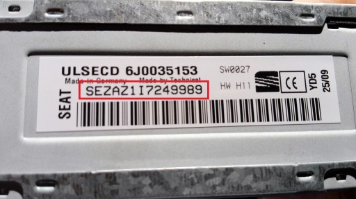 W celu uzyskania kodu należy odczytać numer seryjny radia znajdujący się na obudowie radia, rozpoczynający od liter SEZ, np. SEZ1Z2E5256406 i przesłanie go po zakupie w wiadomości do sprzedającego, w niektórych modelach numer seryjny jest wyświetlany na ekranie radia.