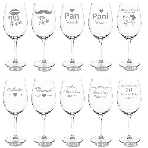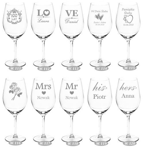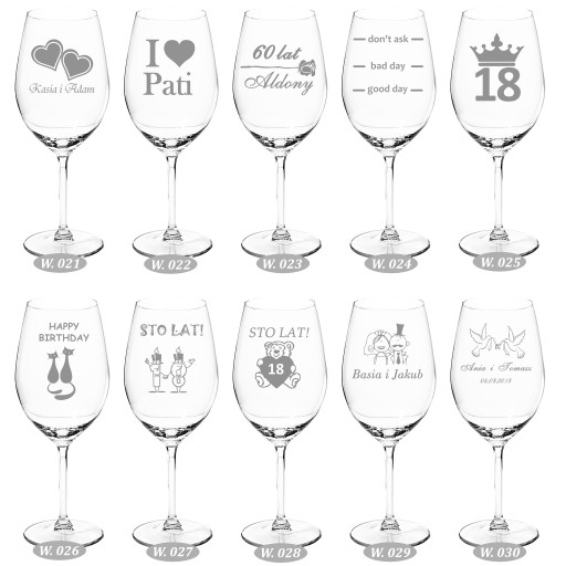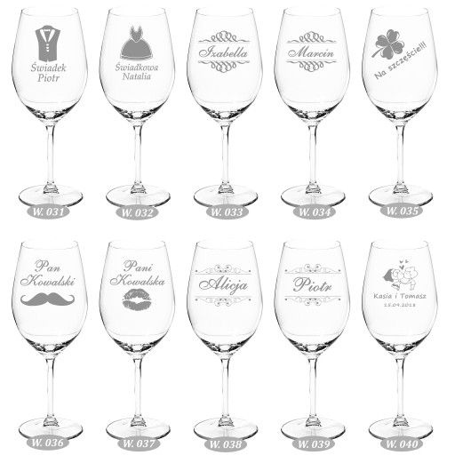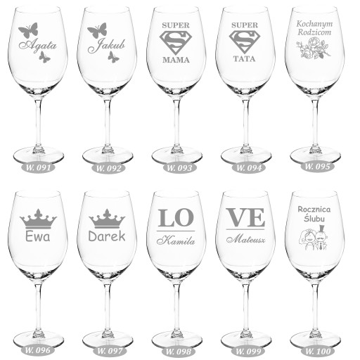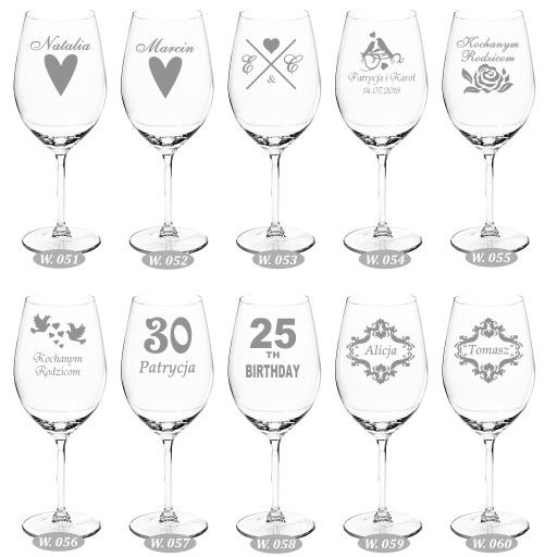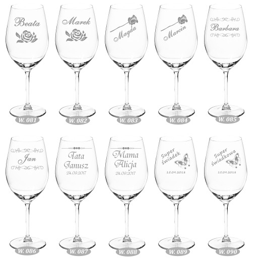 Wszystkie imiona, daty, cyfry itp. przedstawione we wzorach są tylko przykładami, dlatego po zakupie prosimy o dokładną informację o wyborze numeru kieliszków, np.