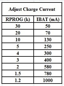 - prąd ładowania: 1A (domyślnie), modyfikacja prądu ładowania poprzez wymianę rezystora "R PROG"