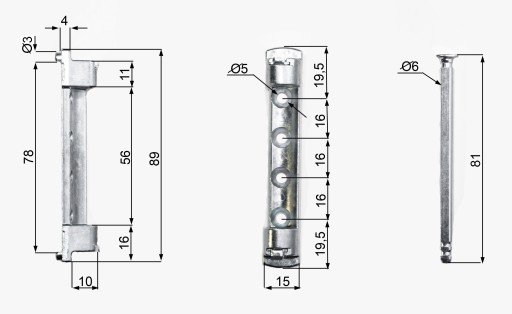 Opis: zawias wykonany jest z metalu ocynkowanego. Jest to zawias okienny górny. Zawias przykręcany jest do ramy okna za pomocą 4 wkrętów. Posiada estetyczną nakładkę z tworzywa w kolorze białym. Zawias tego typu jest stosowany najczęściej w oknach PVC. Jest to zawias uniwersalny bez odmian. Maksymalna waga skrzydła to 100 kg.