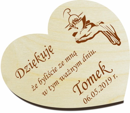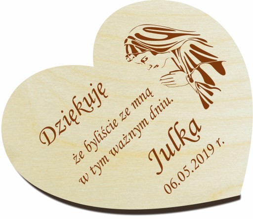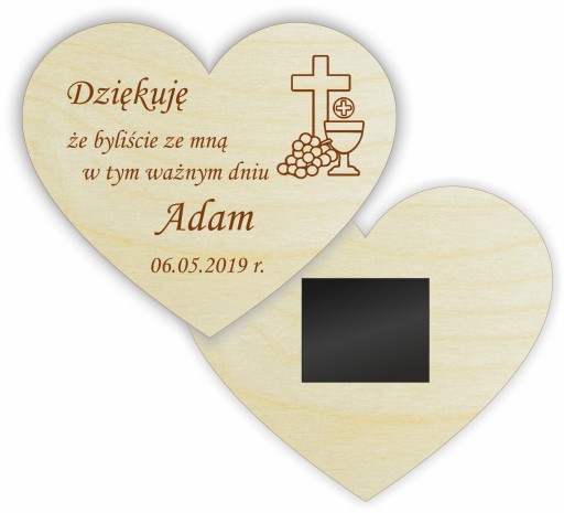 Piękny drewniany magnes z grawerem - podziękowanie Gościom za przybycie, który będzie przypominał im tę uroczystość.