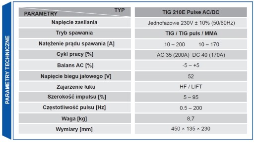Instrukcja obsługi w języku polskim Spawarki Spartus TIG 210E Pulse ACDC