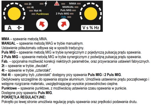 MANUAL – spawanie metodą MAG w trybie manualnym. Ustawienie półautomatu odbywa się w sposób tradycyjny.
