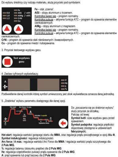 Hot start: regulacja wartości gorącego startu dla MMA, oraz regulacja prądu początkowego w opcji Alu 4t.