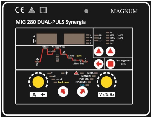 Urządzenie MIG 280 DUAL PULS Synergia marki MAGNUM to zawansowany technologicznie, profesjonalny, synergiczny półautomat spawalniczy z funkcją „pojedynczego i podwójnego pulsu”. Przeznaczony do ręcznego, elektrycznego spawania stali niskowęglowych, niskostopowych, stali nisko i wysoko stopowych, aluminium i jego stopów, miedzi i jej stopów, lutospawania itp.