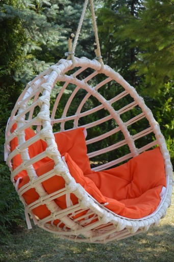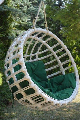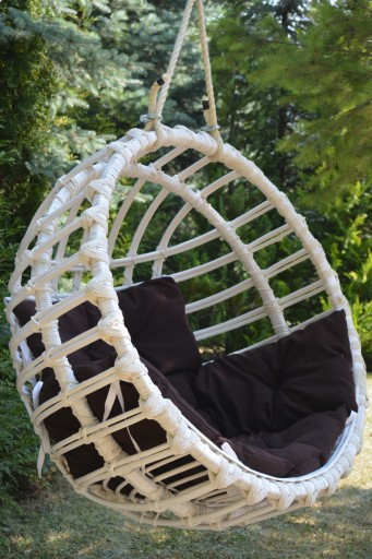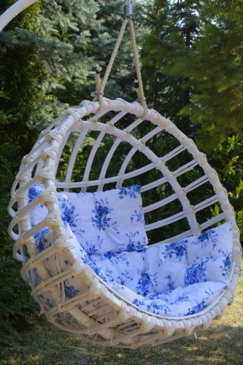 Huśtawka wiklinowa wisząca kolor biały + poduszka