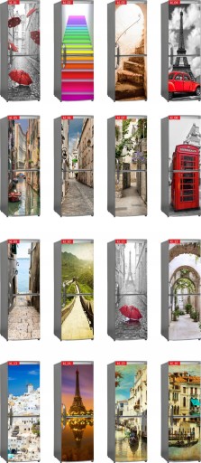 naklejki są wykonane i docięte na wymiar, lecz nie wykonujemy otworów wewnątrz naklejki (np pod podajnik wody czy kostkarkę). Takie otwory można w prosty sposób wykonać własnoręcznie (np przy pomocy nożyka tapicerskiego),