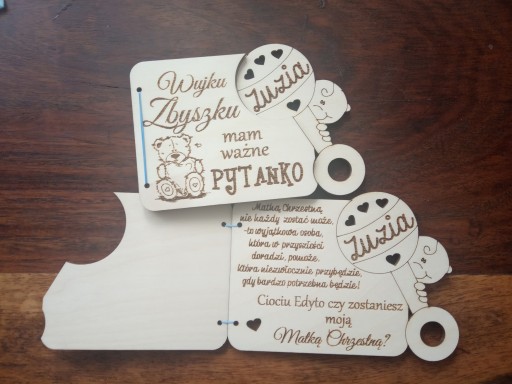 Spersonalizowane kartki będą bardzo miłą niespodzianką dla przyszłego rodzica chrzestnego.