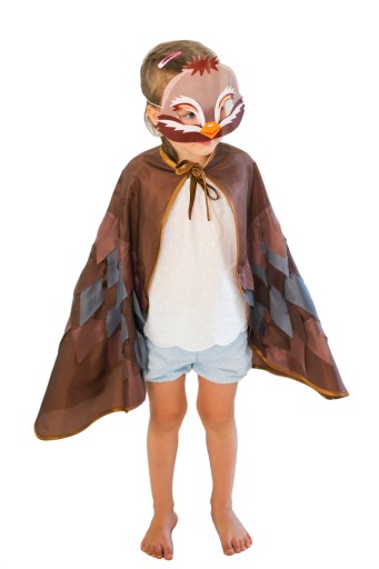 Urocza maska wykonana z papieru z tyłu gumka dla pięknego ptaszka wróbelka lub gołąbka.