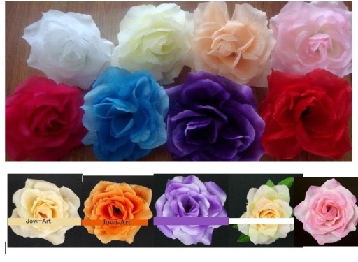 Biały, jasny różowy, ciemny róż, chabrowy, czerwony, jasny fiolet, ciemny fiolet, niebieski, pomarańczowy, krem (żółty), ecru, bordowy, złoty