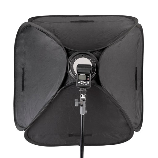 Najlepsze rozwiązanie dla rozpraszania światła lamp reporterskich. Softbox kieruje całe światło na fotografowany obiet.