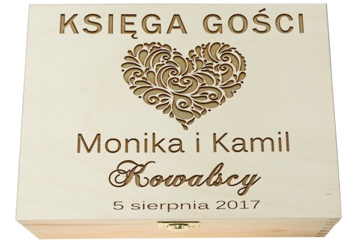 Księga Gości w formie pudełka z wyciętymi 100 serduszkami.