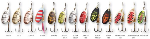 Seria standardowych błystek obrotowych. Rozmiary 1, 2 i 3 doskonałe do połowu pstrągów, okoni i kleni, a rozmiary 4 do 6 sandaczy, szczupaków i łososi.