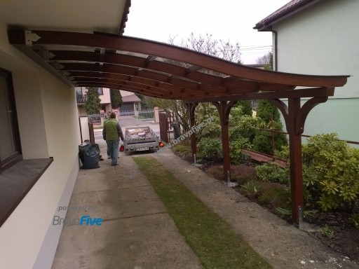 Carport przyścienny z dachem "S" to solidna konstrukcja wykonana z drewna klejonego