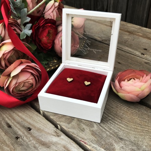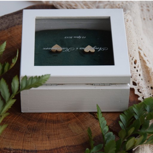 КОРОБКА ДЛЯ БЕЛЫХ ОБРУЧАЛЬНЫХ КОЛЬЦ В РУСТИКЕ с гравировкой