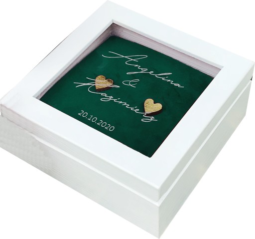 PIĘKNE I DELIKATNE PUDEŁKO NA OBRĄCZKI W KOLORACH ZIELENI