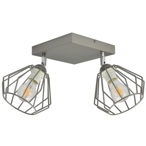 Nowoczesna lampa plafon - wyposażona w dwa ruchome klosze wykonane z drutu. Styl Edison-Loft.