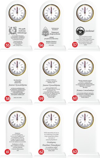 Piękny szklany zegarek - podziękowanie wykonywane jest technologią grawerowania laserowego, bezpośrednio na przedmiocie. Szklana statuetka prezentuje się doskonale dzięki klasycznemu kształtowi. Statuetka osadzona jest na solidnej podstawie z tego samego materiału, które są ze sobą połączone na stałe. Grawer wykonany jest na wysokiej jakości ploterze laserowym. Sprawia to, że grawer nawet na kilku zakupionych produktach nie różni się niczym. Dodatkowo jest ręcznie i bardzo starannie wypełniany przez rzemieślnika specjalną farbą. Złota lub srebrna farba nadaje niesamowity efekt. Tak wysokiej jakości nie znajdziesz nigdzie indziej. Osoba, która otrzyma prezent wykonany w tak wysokiej jakości, na pewno będzie zachwycona a Wy będziecie dumni, że mogliście go jej wręczyć.