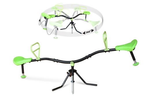 Ta huśtawka nie tylko unosi się w górę iw dół, ale również obraca się o 360 stopni! Poza tym pod siedzeniami jest zamontowany dodatkowy element sprężysty!