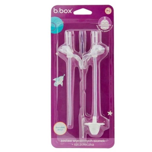 Zestaw 2 zapasowych słomek i szczoteczka do bidonu b.box