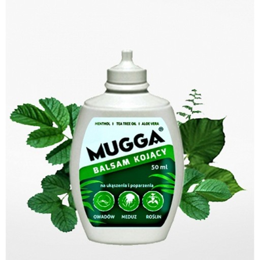 - Mugga® balsam kojący 50 ml to produkt przeznaczony do stosowania miejscowego. Szybko znosi ból i swędzenie skóry wywołane ukąszeniami owadów oraz parzącym działaniem pokrzyw i meduz