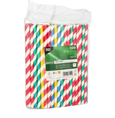 Słomki z papieru, ekologiczne "pure", średnica 6 mm, 20 cm, paleta barw, "Stripes"
