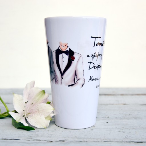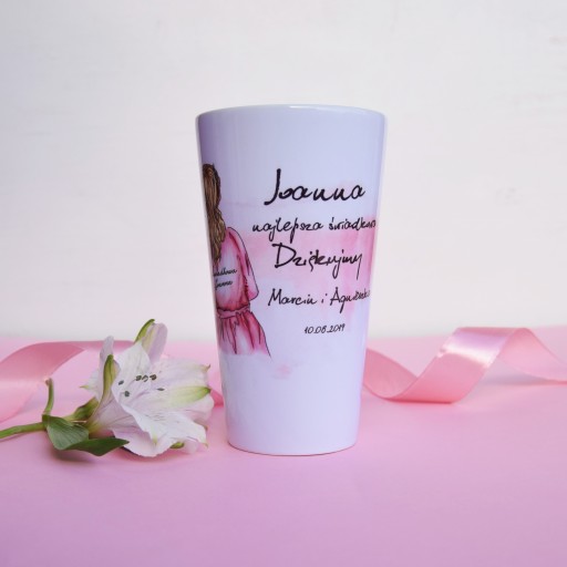 Kubek latte z indywidualnym nadrukiem to świetny prezent i pamiątka dla swojego świadka w ramach podziękowania za świadkowanie.
