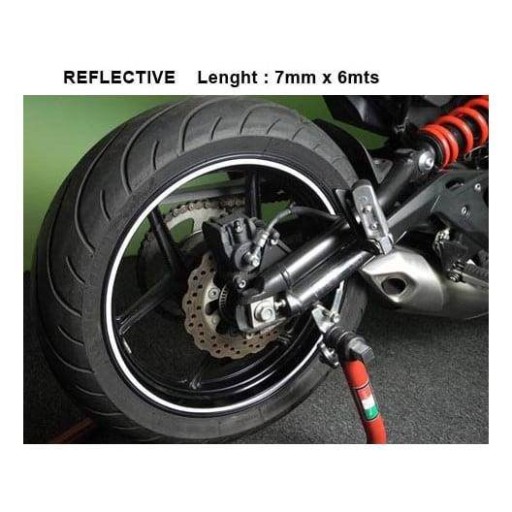 - Długość taśmy: 6m, szerokość: 7mm (wystarczający by okleić dwa koła 17' z obu stron);