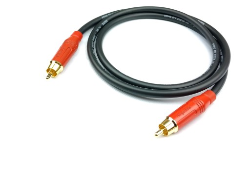 Przewód do subwoofera Klotz AC106 na profesjonalnych, pozłacanych, wysokiej jakości, wtykach RCA firmy Amphenol.