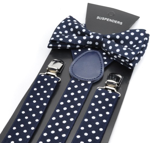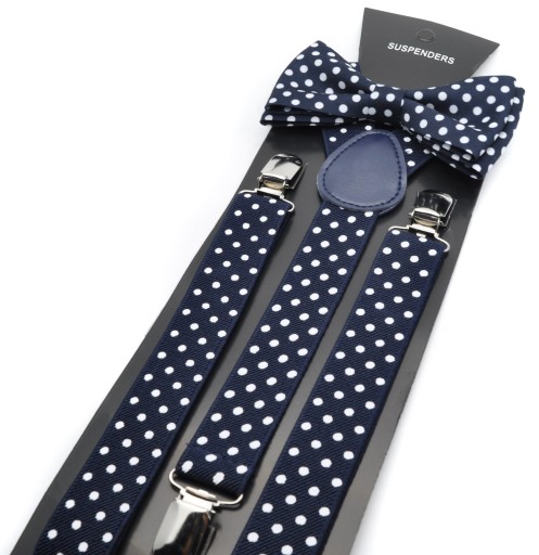 GRANATOWE W BIAŁE KROPKI