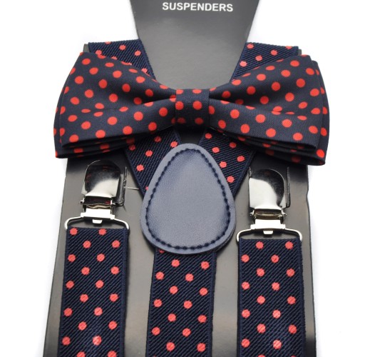 GRANATOWY W CZERWONE KROPKI
