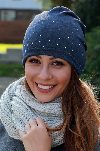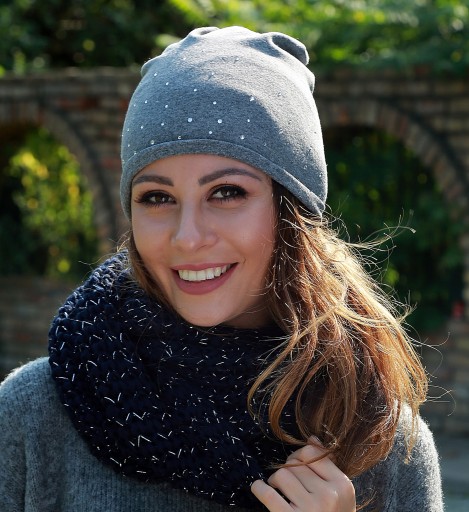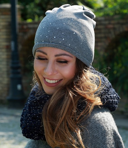 Dresowa czapka z subtelnymi cyrkoniami model wyprodukowany w Polsce. Jedna warstwa - można nosić na rożne sposoby. Świetna jakość bawełny lekka i miękka. Idealna na każdą porę roku. Bardzo mało zajmuje miejsca zawsze można mieć ją w torebce. Wysoka jakość modelu. Rozmiar uniwersalny.