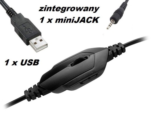 mikrofonu na kablu, wejściem 1 x mini JACK i USB (podświetlenie), do komputera, laptopa, konsoli !!!