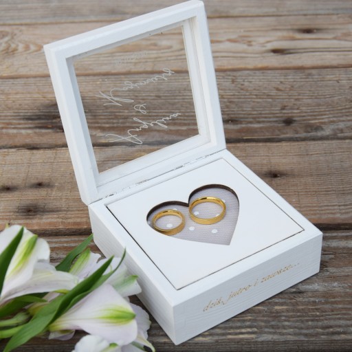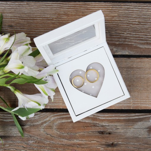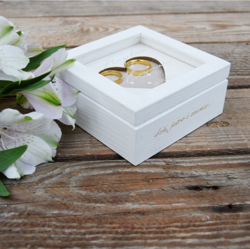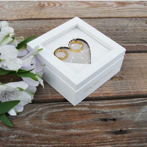 PIĘKNE I DELIKATNE PUDEŁKO NA OBRĄCZKI Z SERCEM