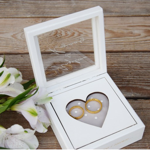 КОРОБКА ДЛЯ ОБРУЧАЛЬНЫХ КОЛЬЦ БЕЛАЯ с гравировкой СЕРДЦЕ